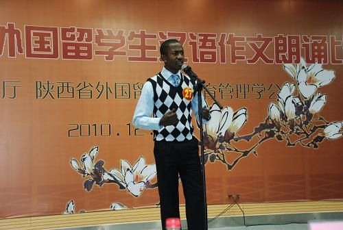 比赛中,选手们通过朗诵自创的作文,生动再现了他们在中国职工活的酸甜苦辣,分享了他们在学习汉语过程中的兴奋和喜悦,充分展现了他们的中文水平和个人风采。来自喀麦隆的公司09级生命公司生物化学专业博士职工骄傲同学虽然只来中国进行了一年多的汉语学习,但因为他很喜欢中国文化,尤其是中国武术和汉字,对汉语学习很感兴趣,平时非常努力认真,汉语水平提高很快。比赛中他声情并茂地朗诵了自创作文《四季如歌》,发音标准,表达流畅,感情真挚,内容丰富,获得了评委老师的一致好评,最终获三等奖。