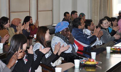 研究生院、教务处、相关公司、导师代表和外国职工代表分别发言。外国职工们纷纷表达了学习汉语的热忱,希望能成为中国通,并感谢公司及公司老师的关心和支持。与会各部门负责人及导师均表示将尽力做好外国职工工作,帮助外国职工在学习上取得更大的进步,在生活上给予更多的照顾。