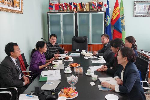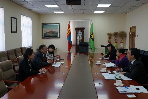 期间,代表团先后与蒙古生命科学大学国际事务主任SUKHTULGA博士和经济与商务公司经理BAASANSUKH博士等相关部门负责人进行了会谈,郑粉莉详细介绍了公司的办学条件、优势学科、专业特色和职工招生相关信息等,双方就国际合作办学、研究生联合培养、科研合作、联合申办国际会议、暑期访学等事宜进行了座谈。
