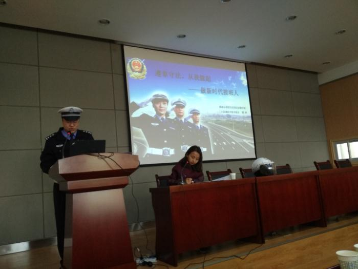 3月31日,校保卫处联合杨凌示范区公安局交警支队在bevictor伟德官网报告厅为公司职工开展道路交通安全知识讲座。主讲人为杨凌示范区公安局交警队城区中队中队长魏闻 。为了保证学习效果,职工辅导员庞雪琴进行了现场翻译,近100名职工聆听了讲座。