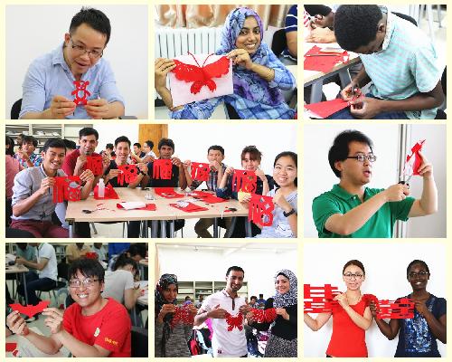 “老师这是一个汉字吗?为什么有两个喜欢的喜在一起呢?”,“老师,我可以用绿色的纸剪吗?在我的国家我们喜欢绿色。”6月17日上午,公司第三届中国文化周系列活动继续在bevictor伟德官网206教室展开。本次活动的主题是中国剪纸,作为人类非物质文化遗产,剪纸艺术源远流长,它起源于民间,是一种深受中国人民喜爱的民俗艺术,并且以其独特的视觉形象和造型格式日渐成为中国走向世界的一个重要的文化符号。