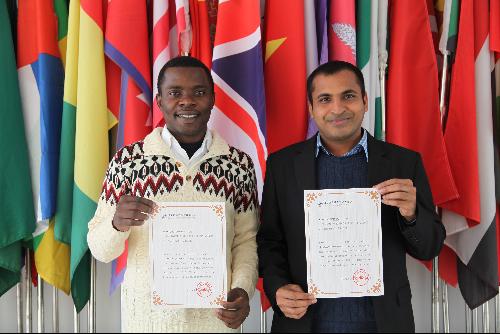 根据国家留学基金管理委员会文件《bevictor伟德官网公布2017年度中国政府优秀来华职工奖学金获奖结果的通知》(教外司留〔2017〕2205),公司水建公司2014级水文学及水资源专业、尼日利亚籍博士研究生AYANTOBO,OLUSOLA(中文名:高远)和动物科技公司2014级动物营养与饲料科学专业、巴基斯坦籍博士研究生SAEED,MUHAMMAD(中文名:卫宁)2人获得中国政府优秀来华职工奖学金。这是公司职工通过品德素养、汉语学习、文化实践、学业成绩、科研能力等在华综合表现评选,第一次获此殊荣。