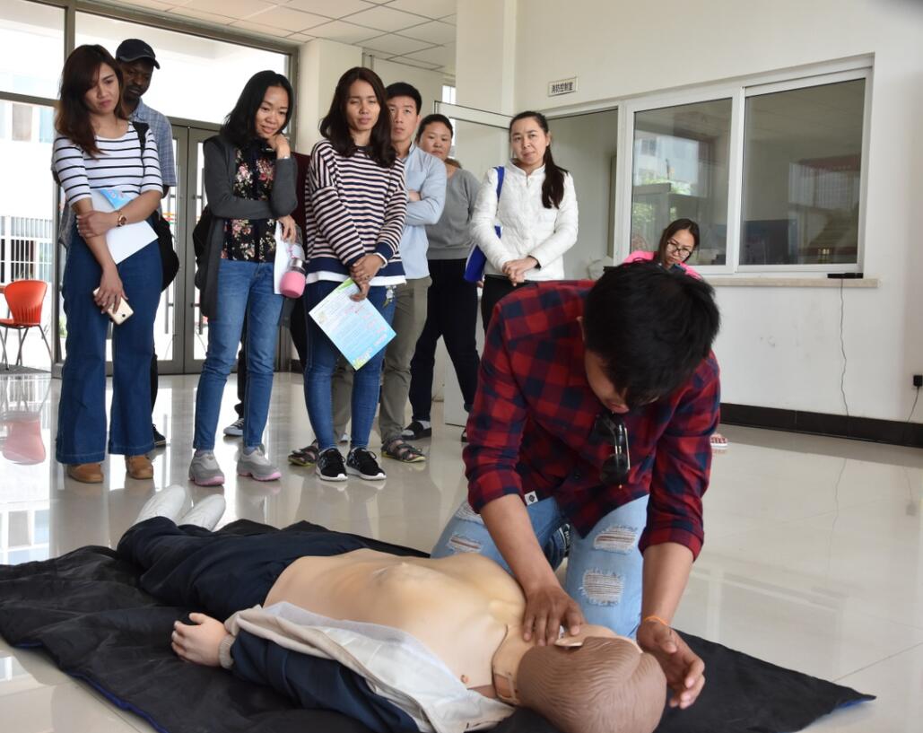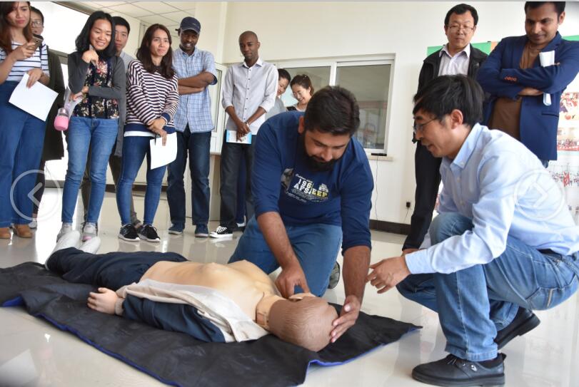 心肺复苏培训环节,医生采用理论知识培训与模拟演练相结合的方式,现场进行了指导培训,给职工上了一堂生动直观的急救技巧课。在观摩了医生的急救示范后,职工们也纷纷尝试亲自操作,现场实践了安全自救和互救的基本技能技巧。
