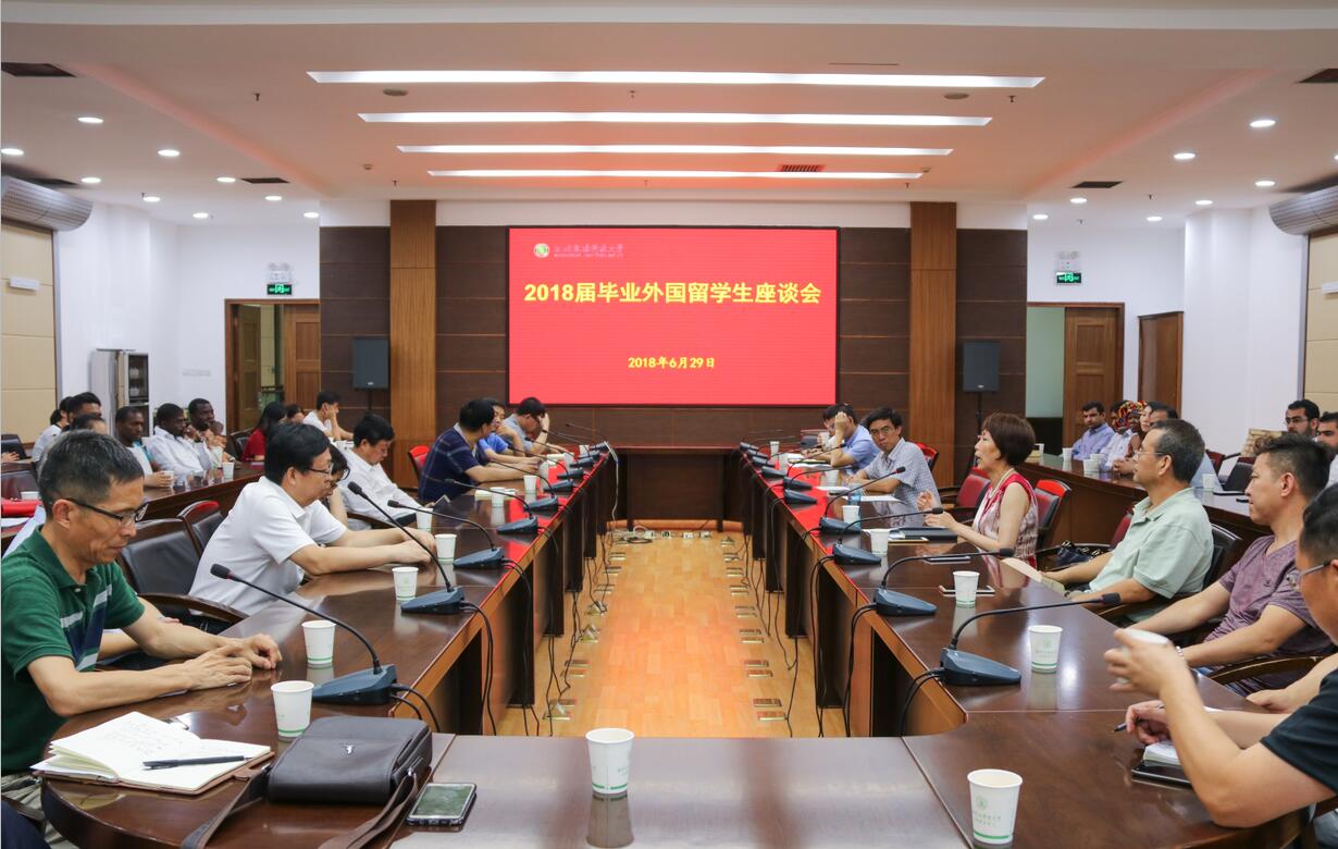 毕业离校前夕,公司2018届毕业外国职工座谈会在国际交流中心210会议室召开,副董事长罗军教授出席会议并讲话,bevictor伟德官网副经理裴志超主持座谈会。党委董事长办公室、教务处、研究生院、国际合作与交流处、计财处、后勤服务中心、体育部、保卫处、校医院、bevictor伟德官网等部门负责人、相关公司分管外国职工工作负责人、导师代表及全体毕业外国职工参加了座谈会。