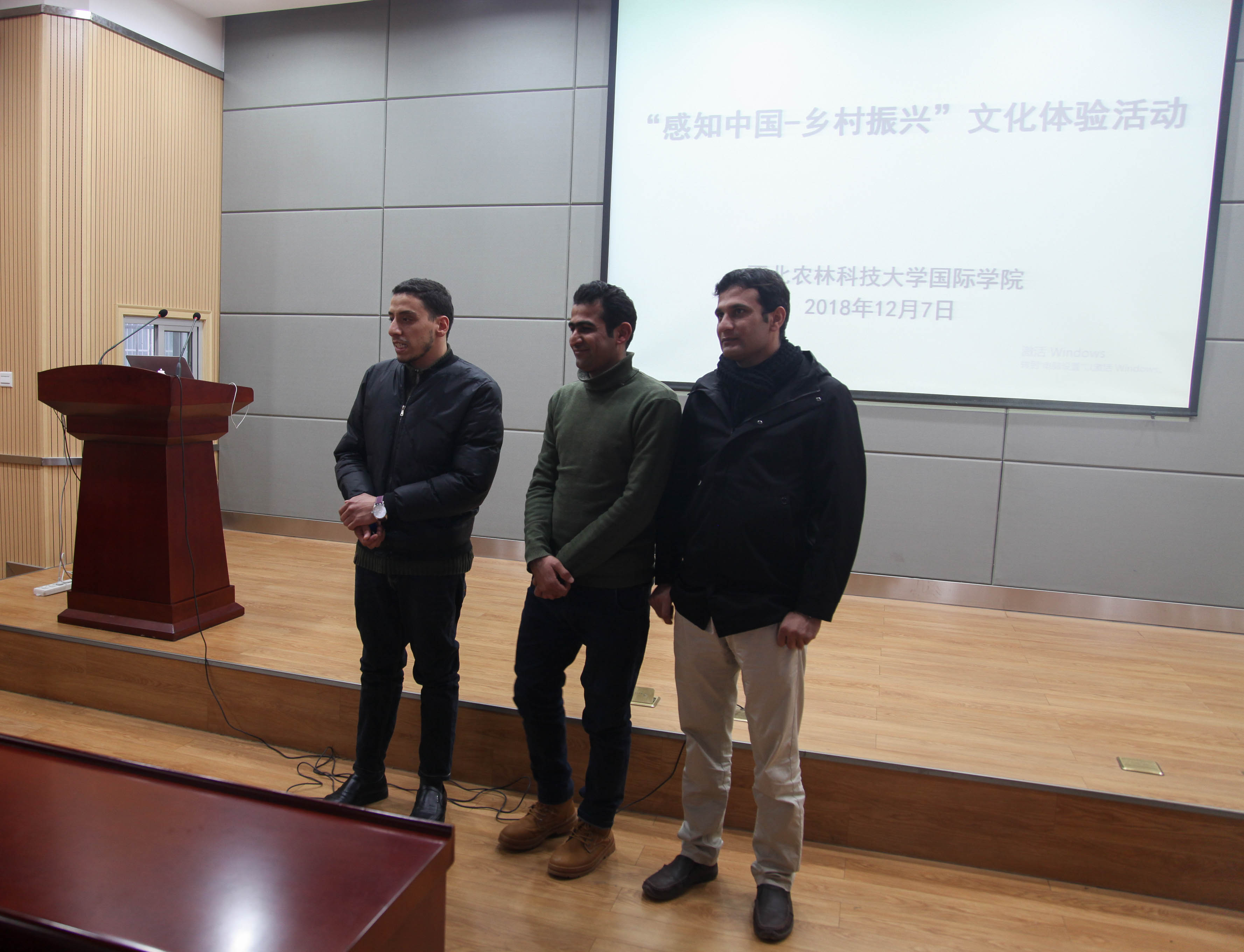 来自巴基斯坦的金乐天、吴可凡和来自埃及的罗伟三名在校职工同样也参加了《黄土高天》的拍摄,在观看剧情后谈到“我们在剧情中饰演的是bevictor伟德教授的研究生,导师请我们在尚特梅斯庄园吃饭,期间他给我们讲中国改革开放以来农村的发展变迁以及农民的奋斗历程。结合上一次‘感知中国’活动我们去参观蒋家寨,了解到当地产业和经济的发展依托于西农在村里建起的‘专家大院’,亲眼见证了高等农业院校发挥资源优势,服务地方经济发展,助力乡村振兴战略。我们有幸参与其中,学到了很多东西,开阔了眼界,真的非常开心”。