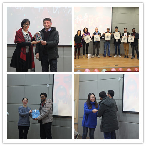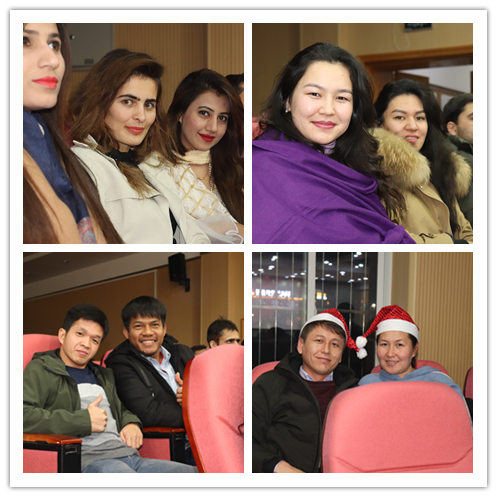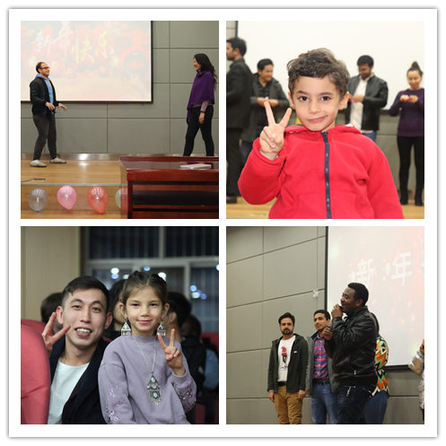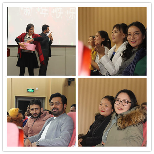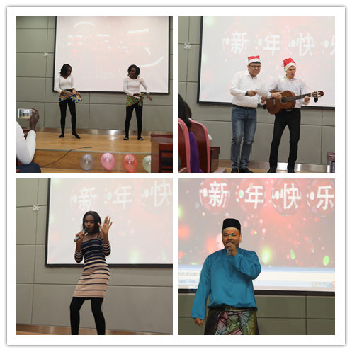 首先,院领导对全体师生表达了新年祝福。在孟加拉新生王琴的红裙热舞中拉开了帷幕。元旦晚会由巴基斯坦2名新生担任主持,哈萨克斯坦职工魏同和魏平吉他伴奏演唱了中文歌曲《我的中文不太好》,展现了一学期以来自己的汉语学习成果;由巴基斯坦职工包一鸣、唐波等载歌载舞,以歌舞串烧的形式演绎巴基斯坦传统文化;来自4个国家的职工演绎青春舞曲《Flash mob》;哈萨克斯坦职工家属见状也积极登台表演,一首青春洋溢的歌曲感染着台下每一名职工;中非职工思琳热歌辣舞,引得台下职工拍手叫好,节目中间穿插着的一波又一波抽奖活动,更是让晚会高潮迭起,气氛热烈。最后晚会在中非职工杜牧同《新年好》的祝福歌声中落下帷幕。